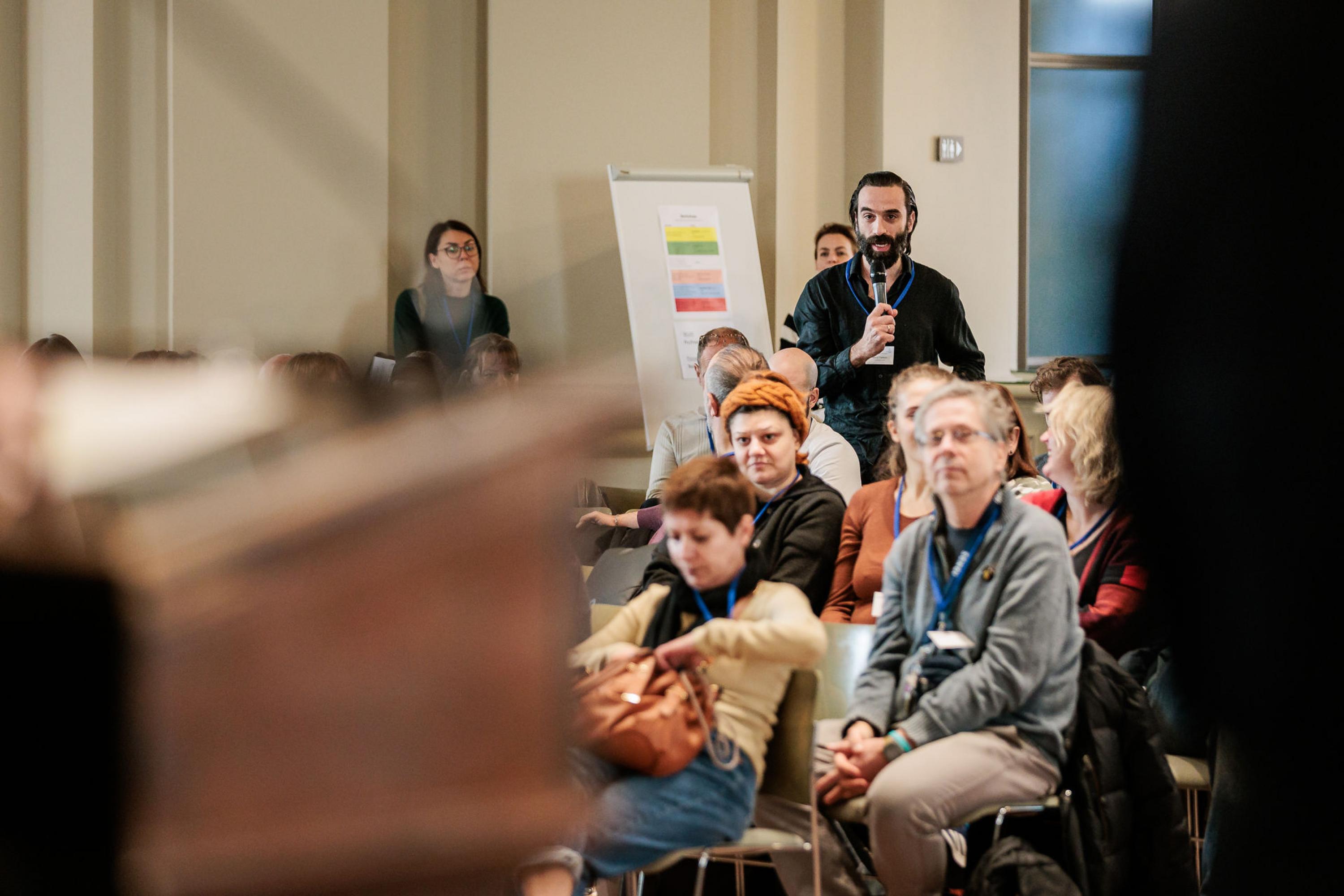 Hassino berichtete über die neue Instagram-Kampagne von Crossroads und der Selbstvertretenden-Gruppe NOW – Nicht ohne das Wir, die Stimmen geflüchteter Menschen mit Behinderungen sichtbar macht: „Wenn Inklusion nur theoretisch ist, müssen wir das System ändern“, rezitierte er eine Teilnehmende aus dem Video-Projekt. Krauthausen personalisiert das Thema Menschen mit Behinderungen und verspricht sich dadurch als Blogger und Aktivist Reichweite. Sein Konzept scheint aufzugehen. Krauthausen ist mit seinen Publikationen und Geschichten regelmäßig Gast in prominent besetzten Talkshows im deutschen Fernsehen. Auf dem Podium unterstrich er die Bedeutung einer respektvollen Darstellung in den Medien: „Wir schulden niemandem Diagnosen. Wir müssen weg von der Deklarierung einer Aufklärung hin zum Selbstverständlichen.“